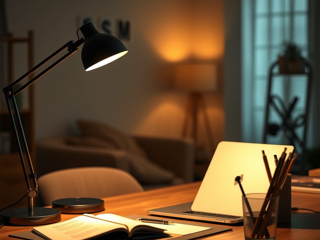 - Oświetlenie biurka: jak ustawić lampkę po lewej lub prawej stronie, by uniknąć cieni i poprawić komfort pracy